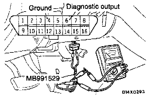 Connect a voltmeter to (4) terminal and (6) terminal of the data link connector underneath the instrument under cover, and take a reading of the diagnostic trouble codes from the movement of the needle on the voltmeter