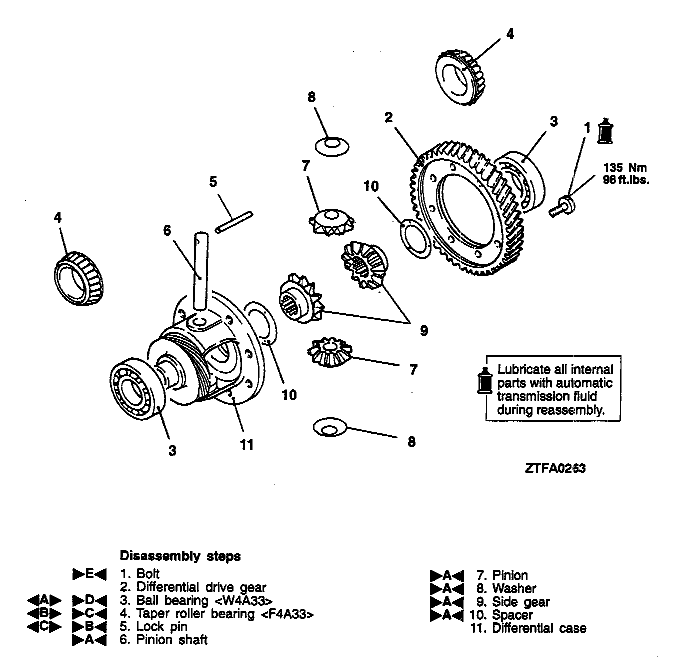 >A< Spacer / Side Gear Washer / Pinion Pinion Shaft Installation