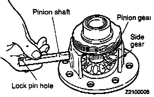 1. Align the lock pin hole in the pinion shaft with that in the case and install the lock pin.