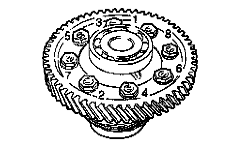 1. Apply ATF to the differential drive gear bolts, install and tighten to the specified torque in the shown order.