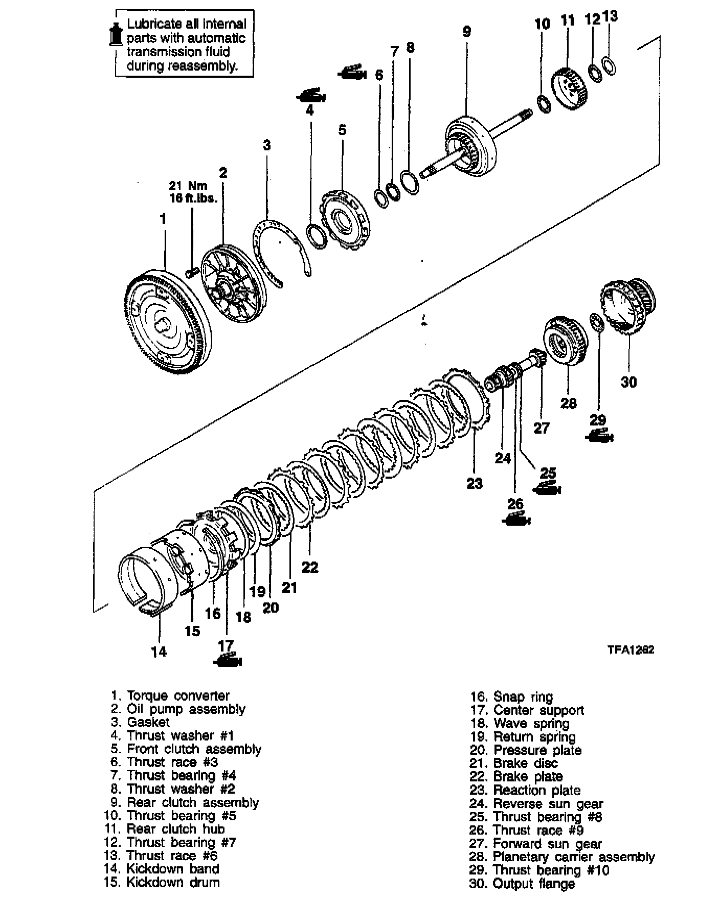 33. Hold the input shaft and remove the front clutch assembly and rear clutch assembly together.