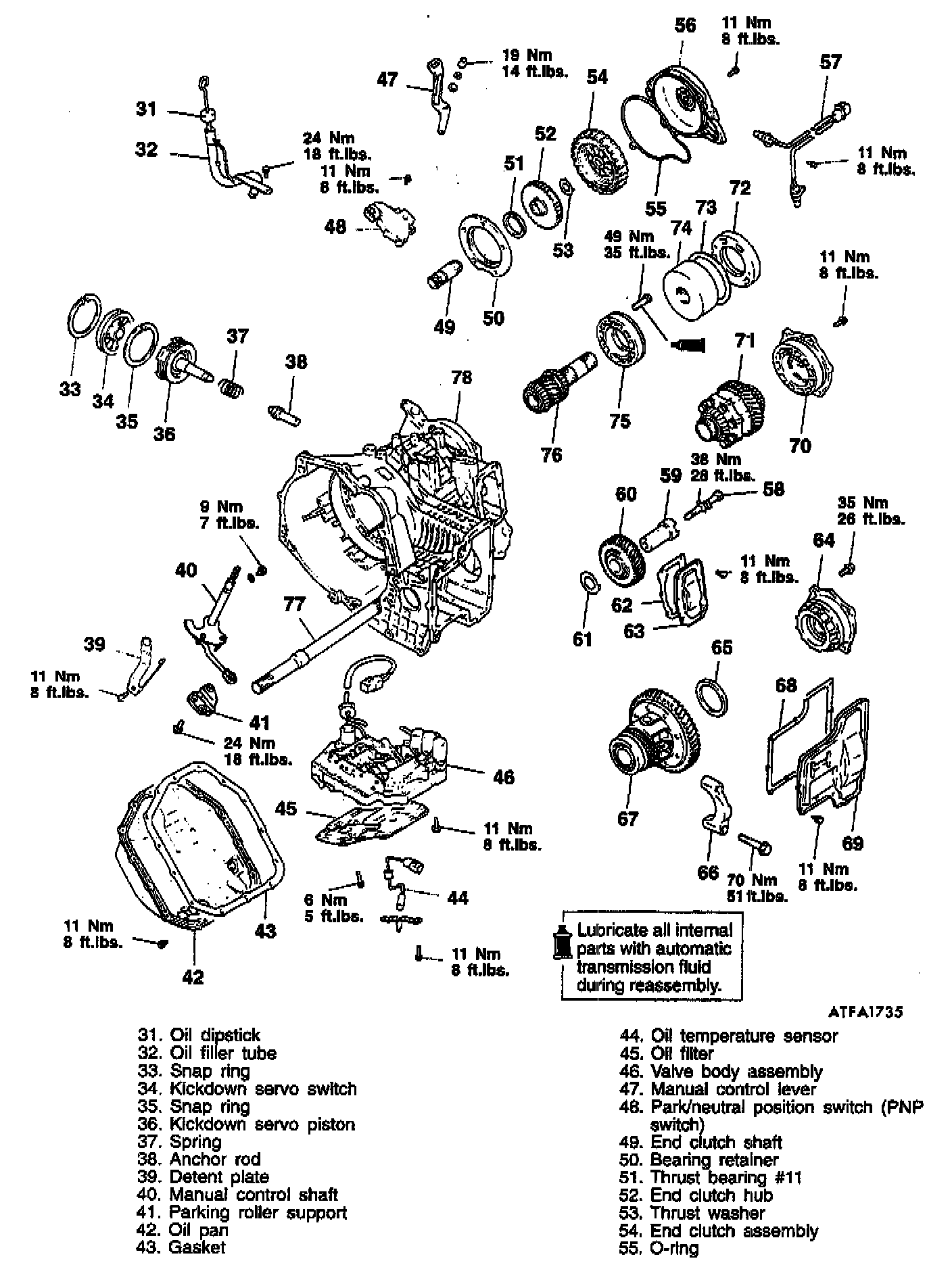6. Remove the manual control lever, then remove the Park/Neutral Position Switch (PNP switch).