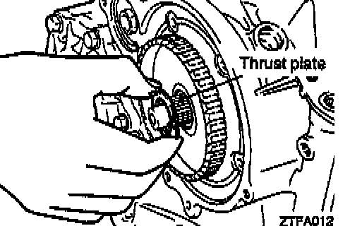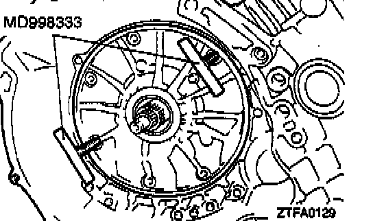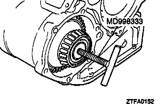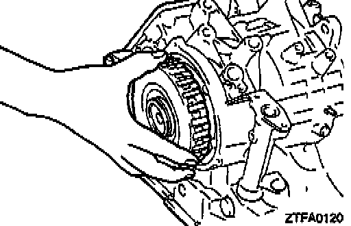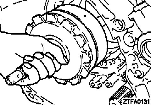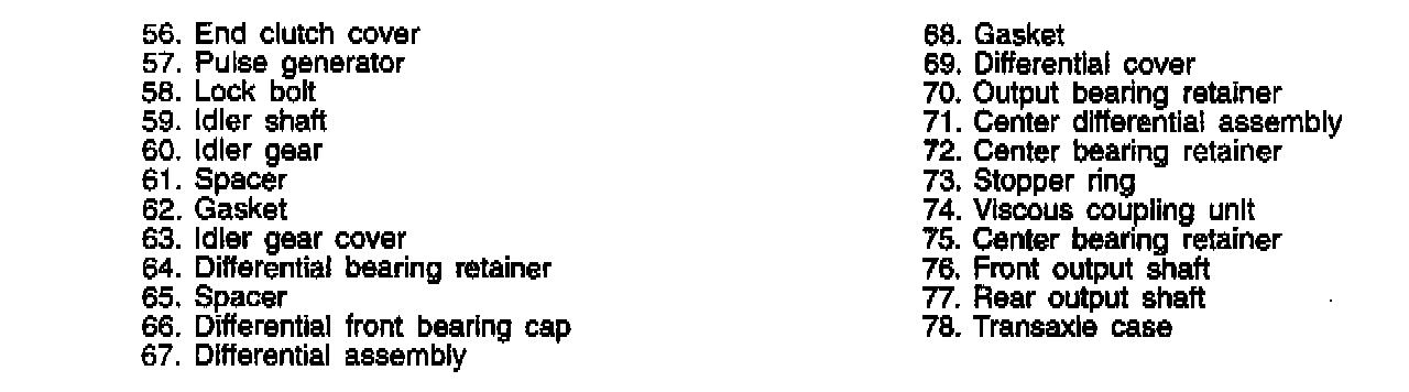 56. First remove the stopper ring and then put a bearing puller or similar tool in the viscous coupling groove and pull out the viscous coupling.