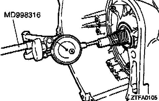 4. Use the special tool to mount the dial gauge on the transaxle case and measure the end play of the input shaft.