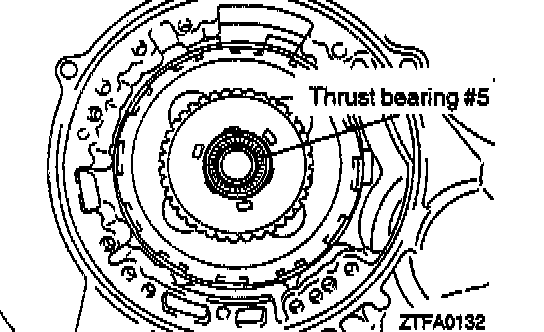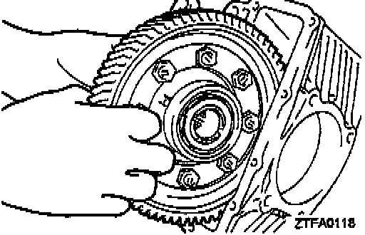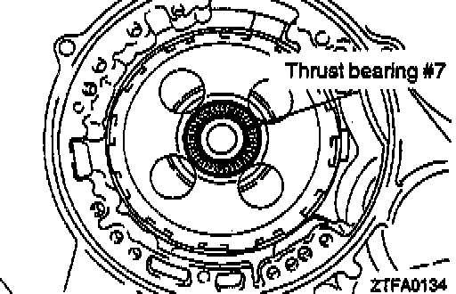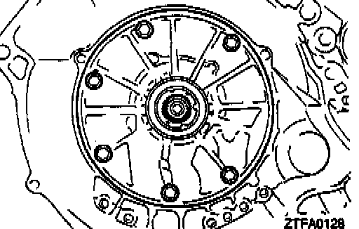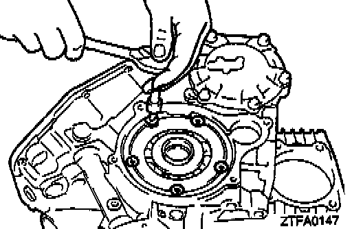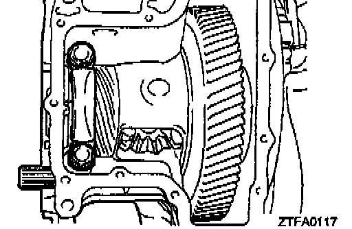 51. Remove the output bearing retainer mounting bolts and then remove the output bearing retainer and outer race.