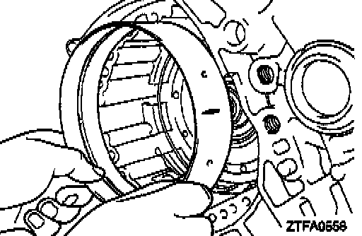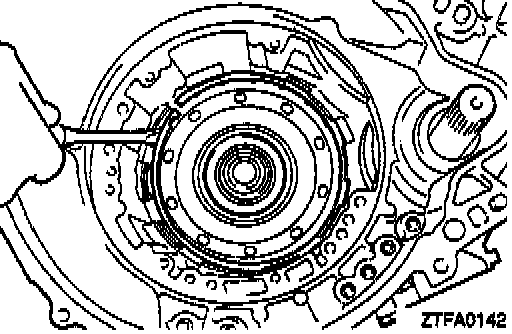 40. Using the special tool, push in the kickdown servo and remove the snap ring.