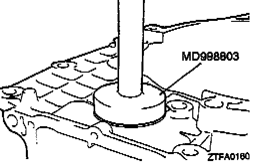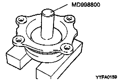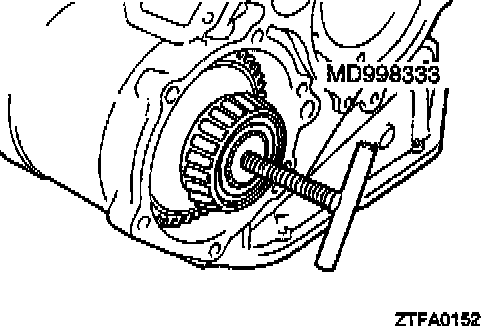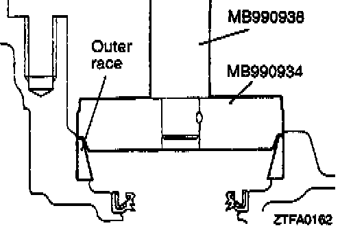 3. Using the Special tool, press-fit the outer race in the transaxle case.