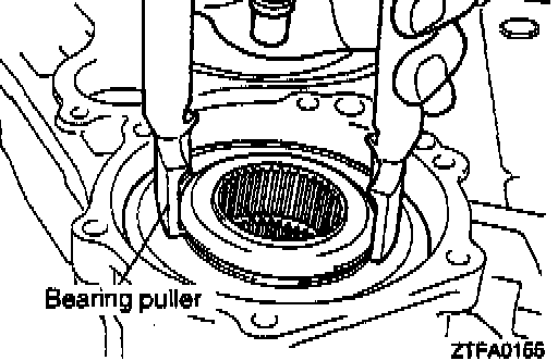 11. Using a bearing puller, support the viscous coupling and insert in the case. Then, install the stopper ring.