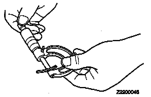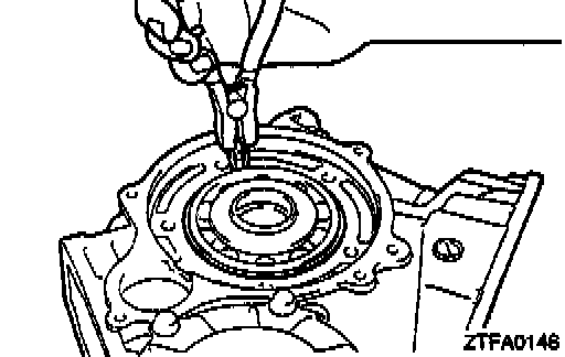 8. Remove the outer race from the front bearing retainer and remove the solder. If the solder does not break, perform the work in steps 5-8 with large diameter solder. Measure the thickness of the crushed solder with a micrometer and select a spacer with the correct thickness so the preload reaches the standard value.
