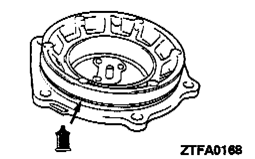 16. Place solder with a length of approximately 10 mm (0.39 inch) and diameter of 1.6 mm (0.06 inch) on the output bearing retainer at the shown positions and install the outer race.