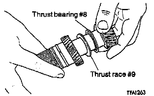 28. Assemble the forward sun gear, thrust race #9, thrust bearing #8 and reverse sun gear