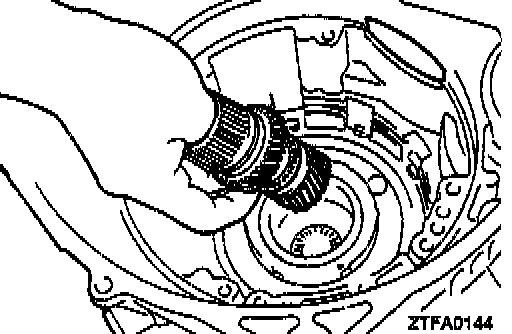 20. Install the spacer selected in the previous item and the outer race on tile output bearing retainer.
