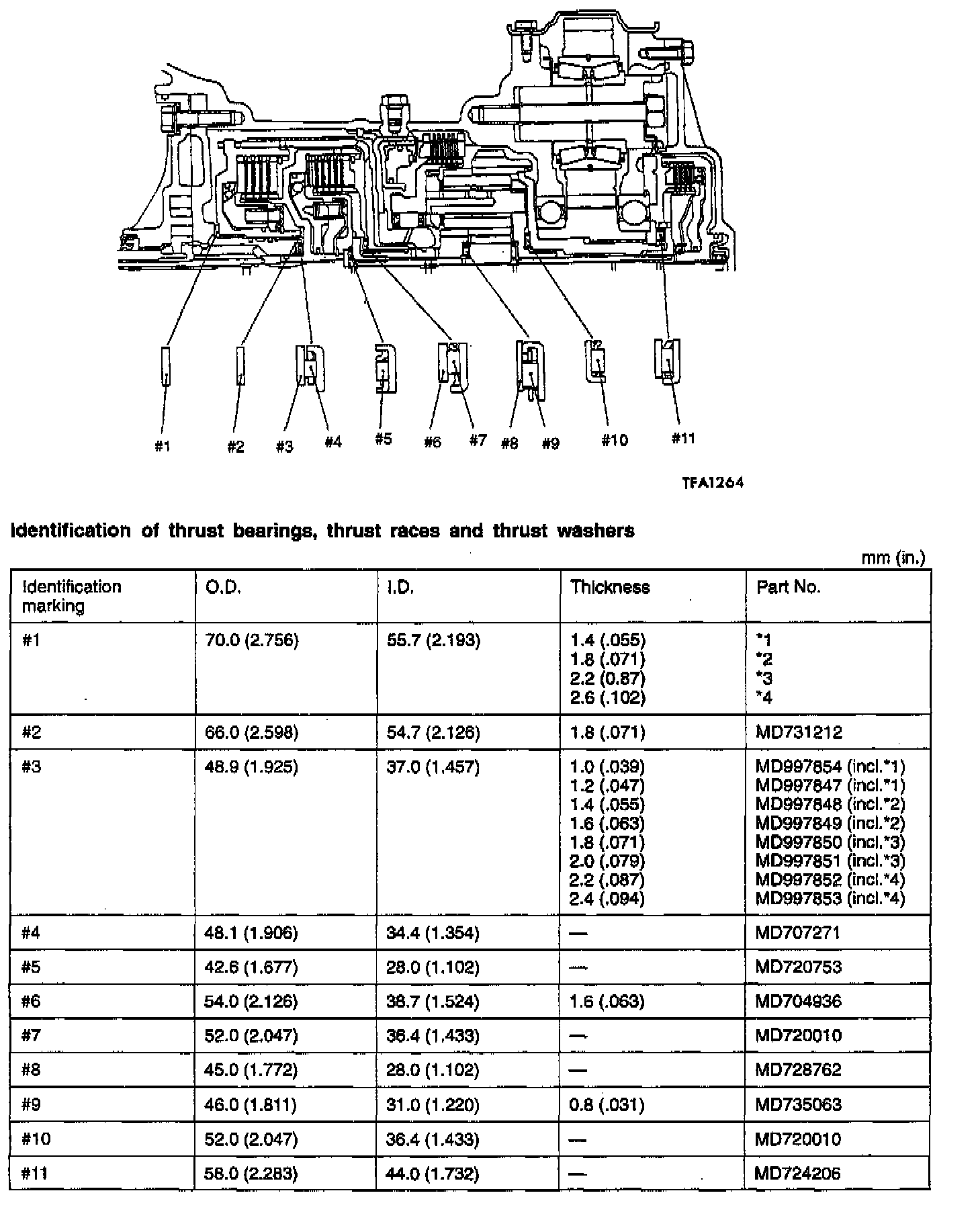 51. Measure the end play of the input shaft. If not the standard value, replace thrust race #3 and thrust washer #1 and adjust to the standard value.