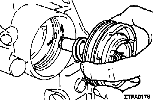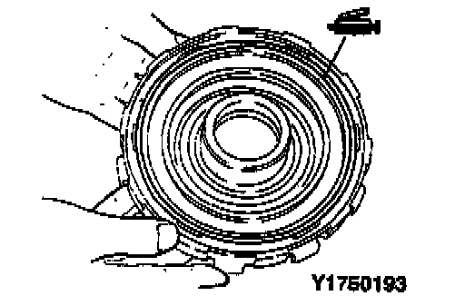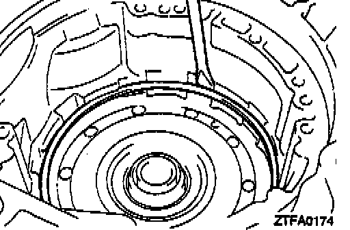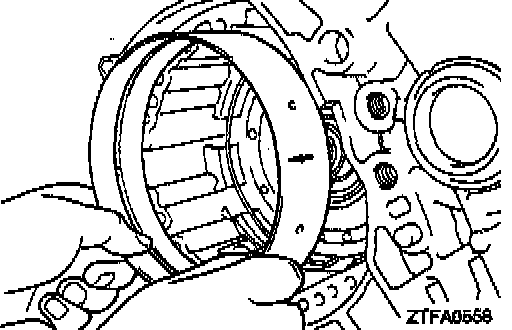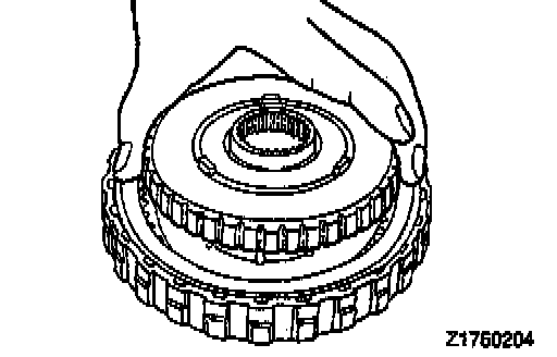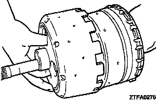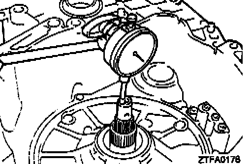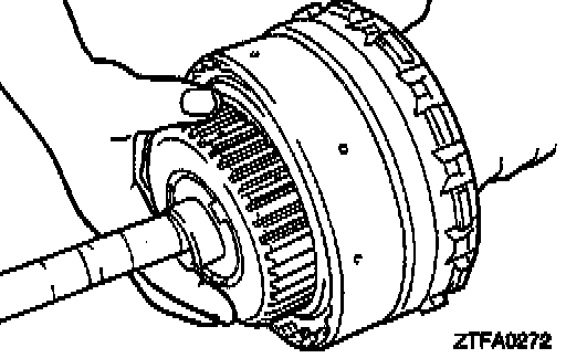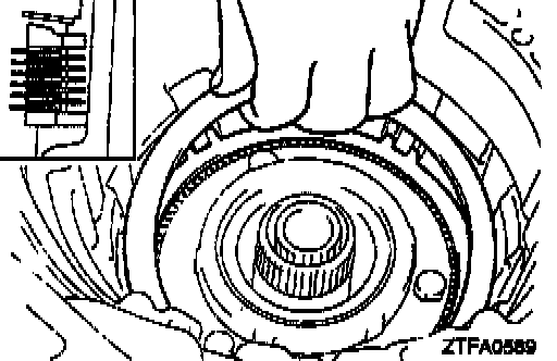 35. Use a feeler gauge and measure the end play of the low-reverse brake. Adjust to the standard value by selecting the proper pressure plate.