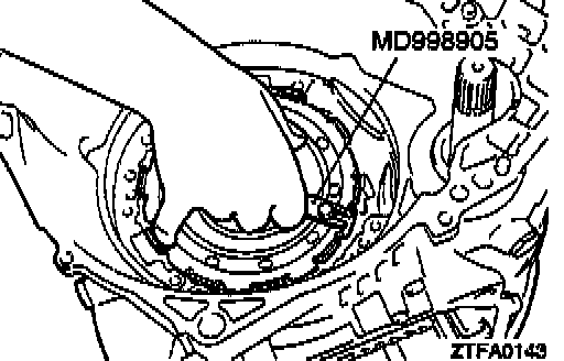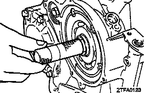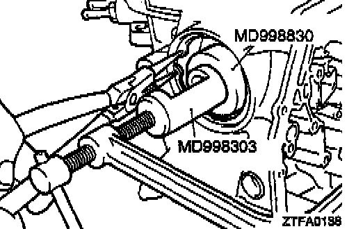 33. Mount the special tool on the center support, install 2 new O-rings and push into the transaxle case.