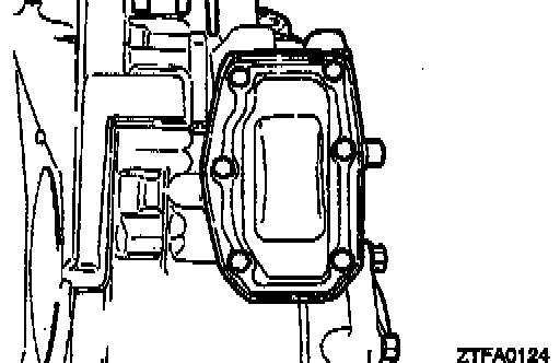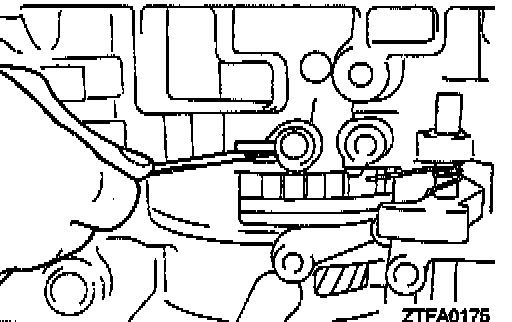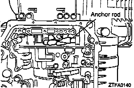 CAUTION: The seal ring alignment hole of the kickdown servo piston must not overlap the oil filler port (indicated by the arrow in the diagram).