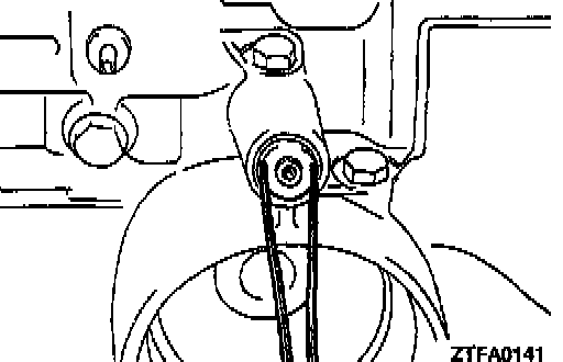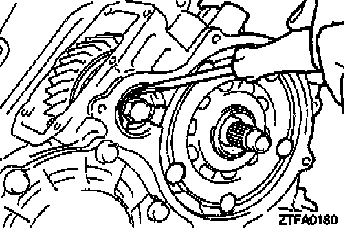 53. Tighten the idler shaft lock bolt together with the new lock plat to the specified torque. Bend the three fingers of the lock plate to prevent turning-