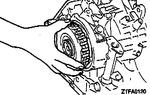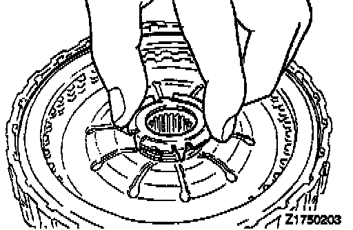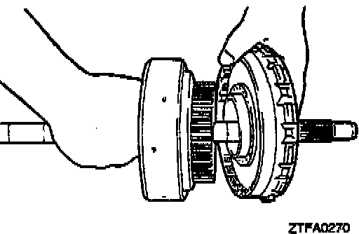 48. Install the clutch assembly and kickdown drum into the transaxle case at the same time.