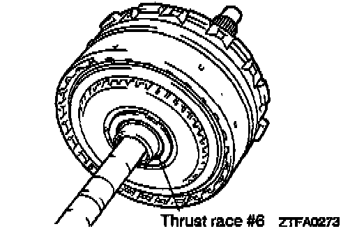 45. Install thrust race #6 on the end of the rear clutch hub.