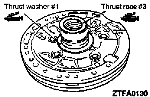 49. Adhere thrust race #3 and thrust washer #1 to the back of the oil pump with petrolatum.