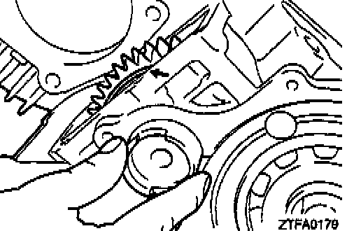 CAUTION: Assemble so that the identification groove on the idler gear faces backward.