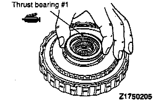 58. Adhere thrust bearing #1 to the end of the clutch hub with petrolatum.