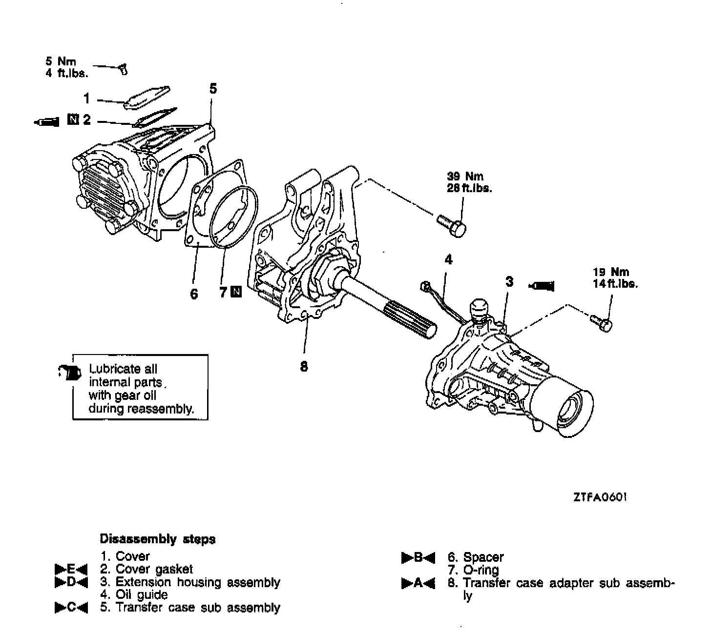 Transfer case adapter mounting bolt: 39 Nm (28 ft. lbs.)