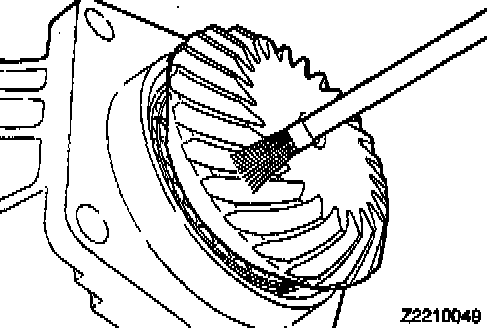 1. Apply a light and uniform coat of machine blue or red lead to the driven bevel gear teeth (both sides) using a brush.