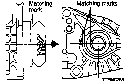 1. With the matching marks in alignment, install the transfer case adapter sub assembly to the transfer case sub assembly.