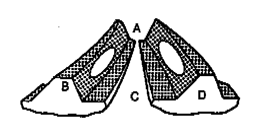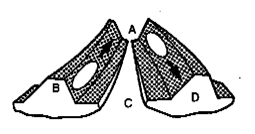 D Coast side tooth face (Side on which force acts when reversing)