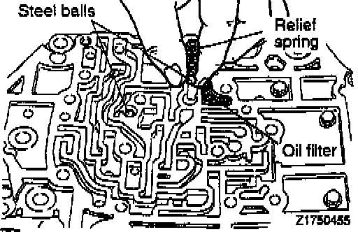 1. Install the oil filter, two steel balls, and spring to the intermediate plate.