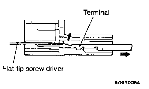Use a flat-tip screwdriver or similar tool to pull out the terminal from the overdrive switch/position indicator light connector case.