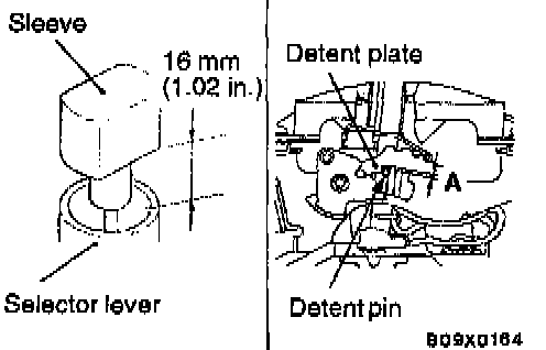 1. Put the selector lever in the "N" position, turn the sleeve and adjust the dimension between the sleeve and the end of the lever so it reaches 16 mm (1.02 inch)