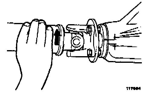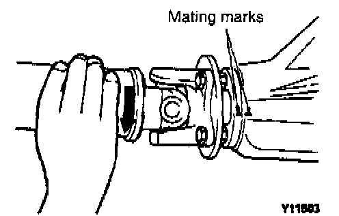 2. Manually turn the propeller shaft clockwise as far as it will go and make mating marks on the companion flange dust cover and the differential carrier