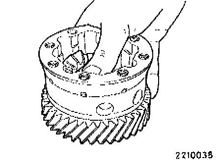 2. Holding down the pinion shaft, select the spacer of maximum thickness that allows the pinion gear to turn lightly and install it to the shaft.