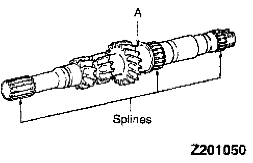 Input Shaft1. Check the outer surface of the input shaft where the needle bearing is mounted for damage, abnormal wear and seizure [portion A].