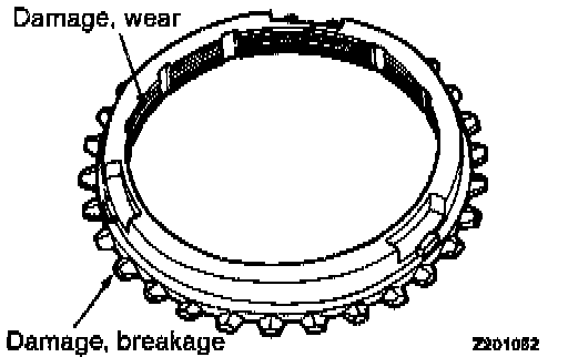 1. Check the synchronizer cone for rough surface, damage and wear.