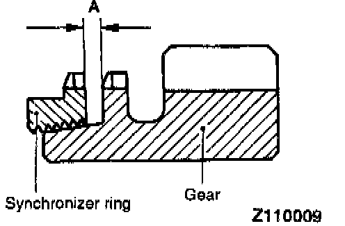 3. Force the synchronizer ring toward the clutch gear and check clearance "A". Replace if it is out of specification.