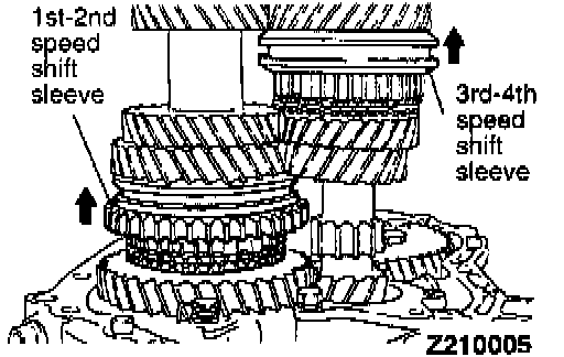 2. Set the 3rd-4th speed shift sleeve at 4th speed.
