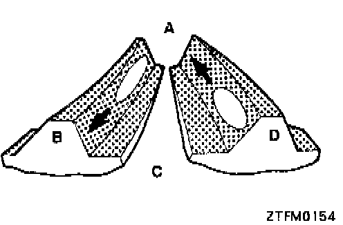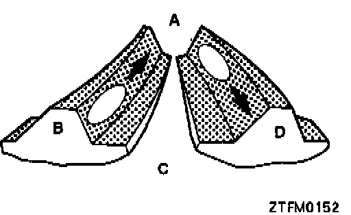 (3) If the tooth contact pattern cannot be adjusted close to the standard pattern by above adjustment, replace the drive bevel gear and driven bevel gear as a set and readjust the tooth contact.