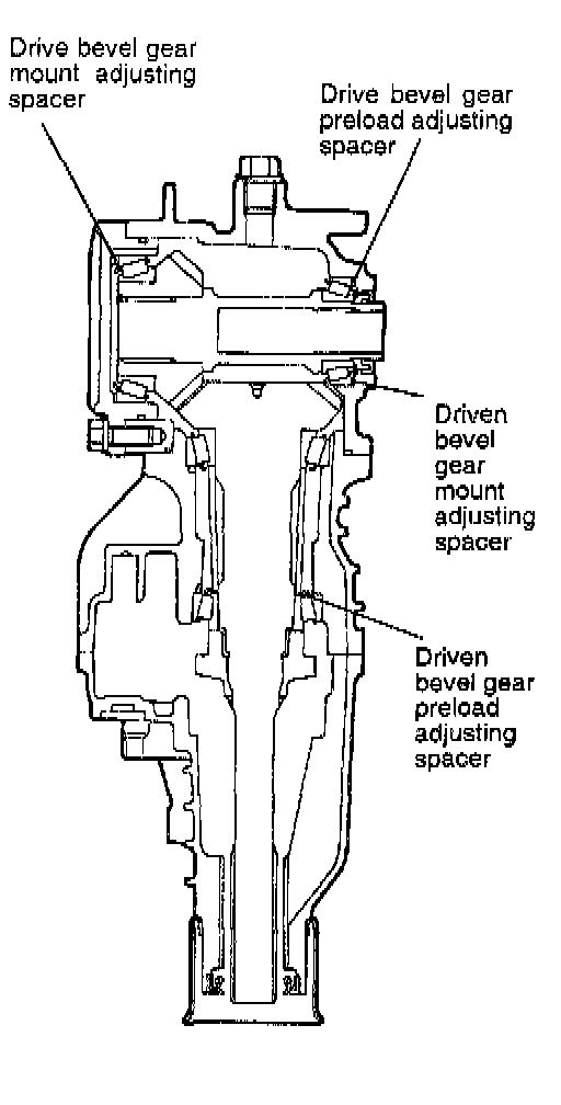 - When the driven bevel gear is too large even if the driven bevel gear mount adjusting spacer 0.52 mm (.0205 in.) is used: