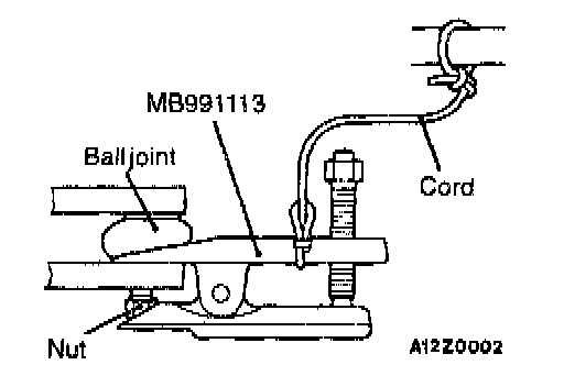 NOTE: Using the special tool, loosen the tie rod end mounting nut. Only loosen the nut; do not remove it from the ball joint.