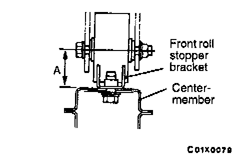 If the dimension shown in the illustration is outside the standard value when the weight of the engine is on the body, replace the front roll stopper bracket assembly.