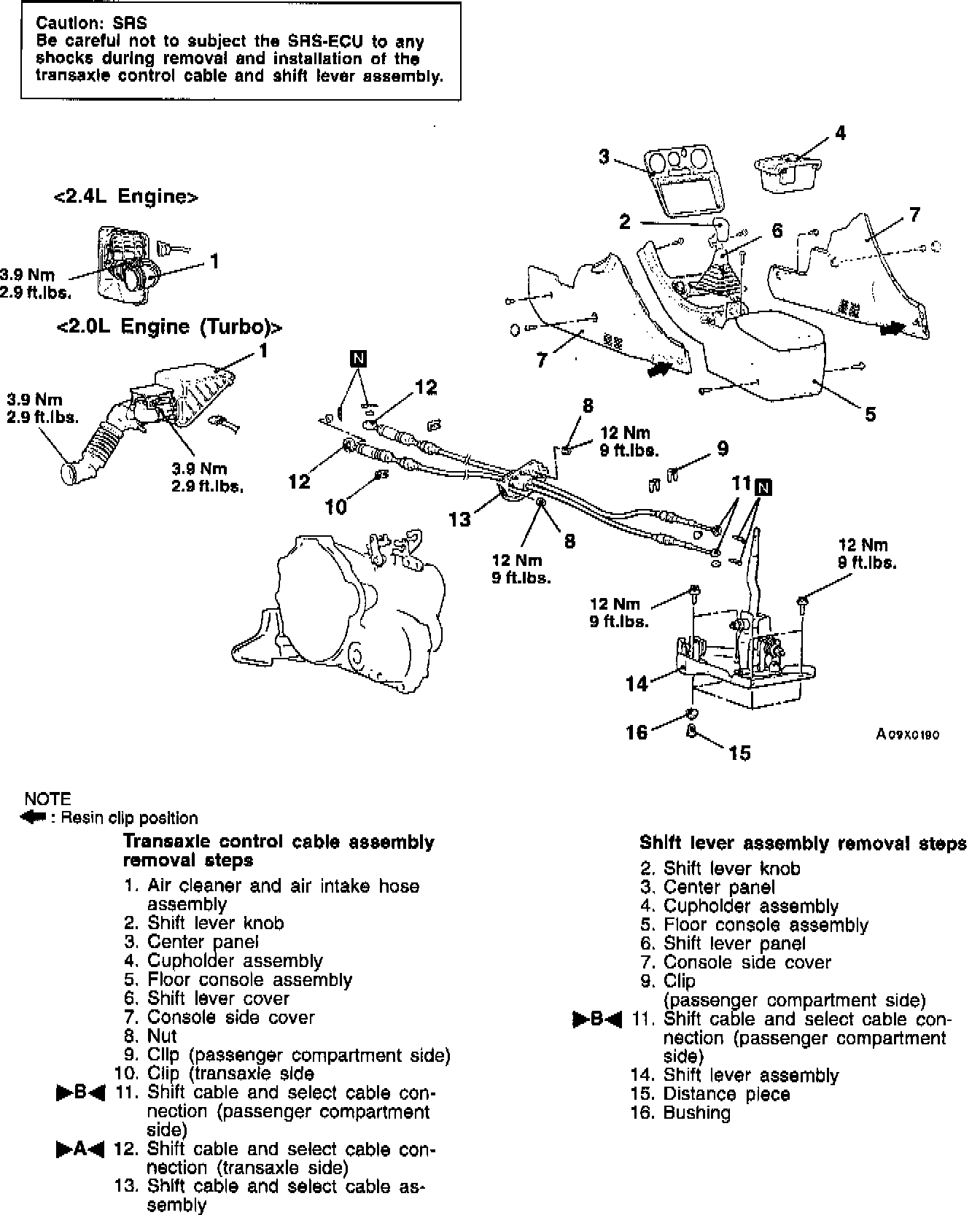 >B< Shift Cable And Select Cable Connection (Passenger Compartment Side)