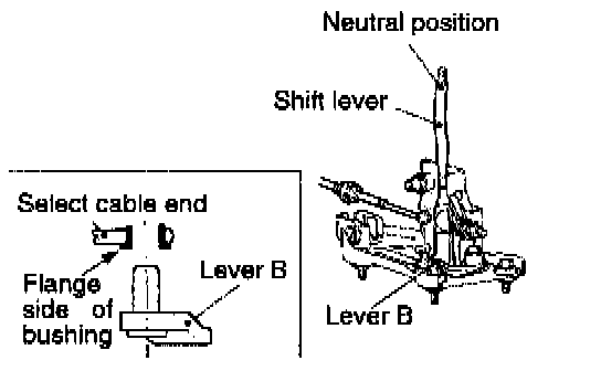 2. Install the select cable so that the flange side of resin bushing is positioned at the edge of lever B side.
