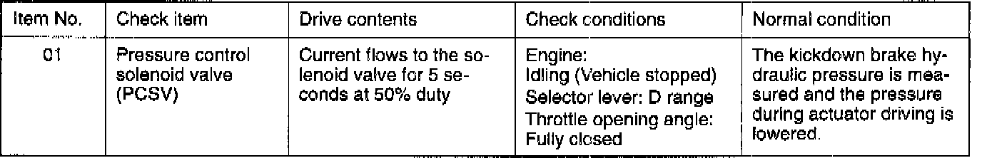 Actuator Test Reference Table