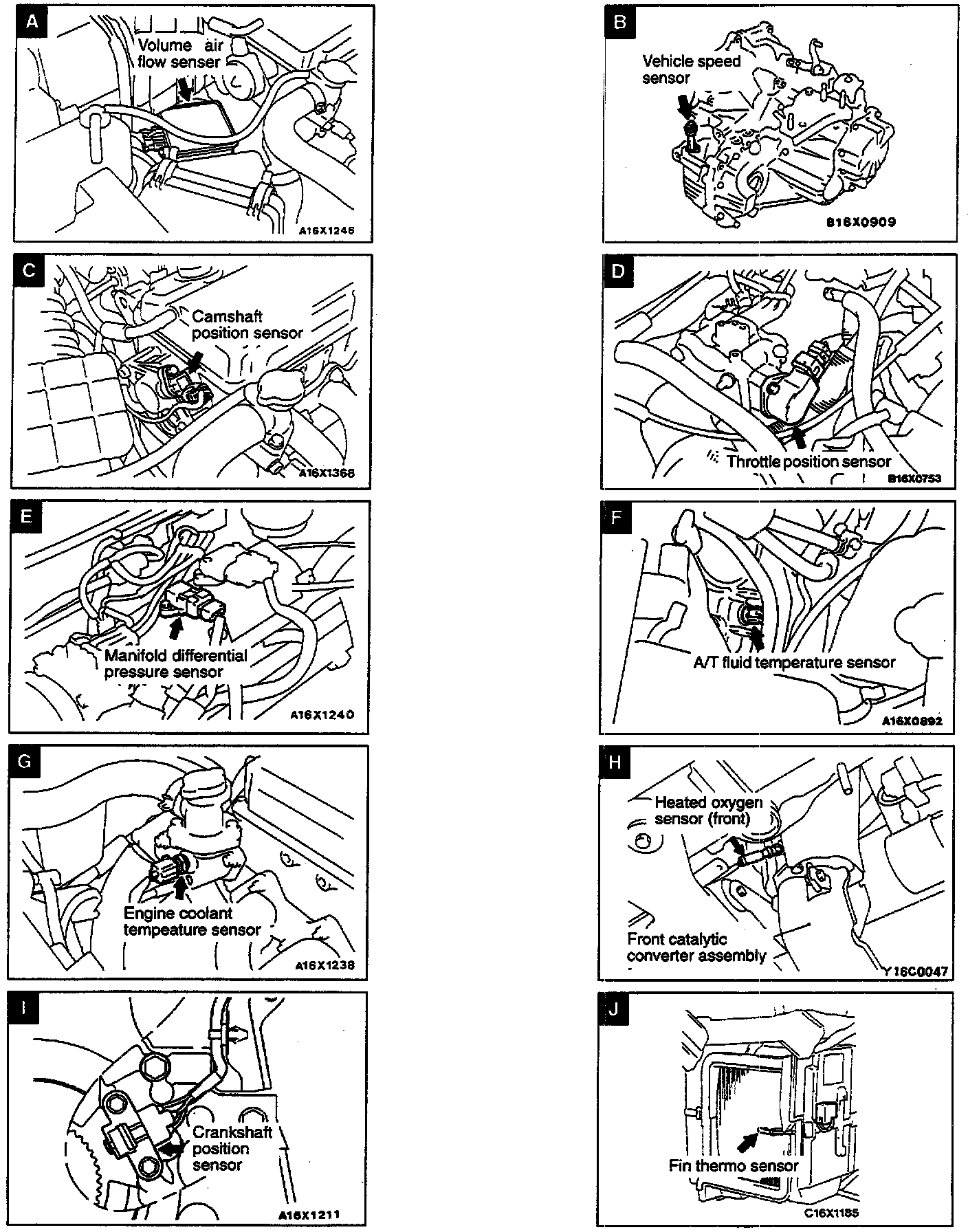 Sensor Locations Views A-J: