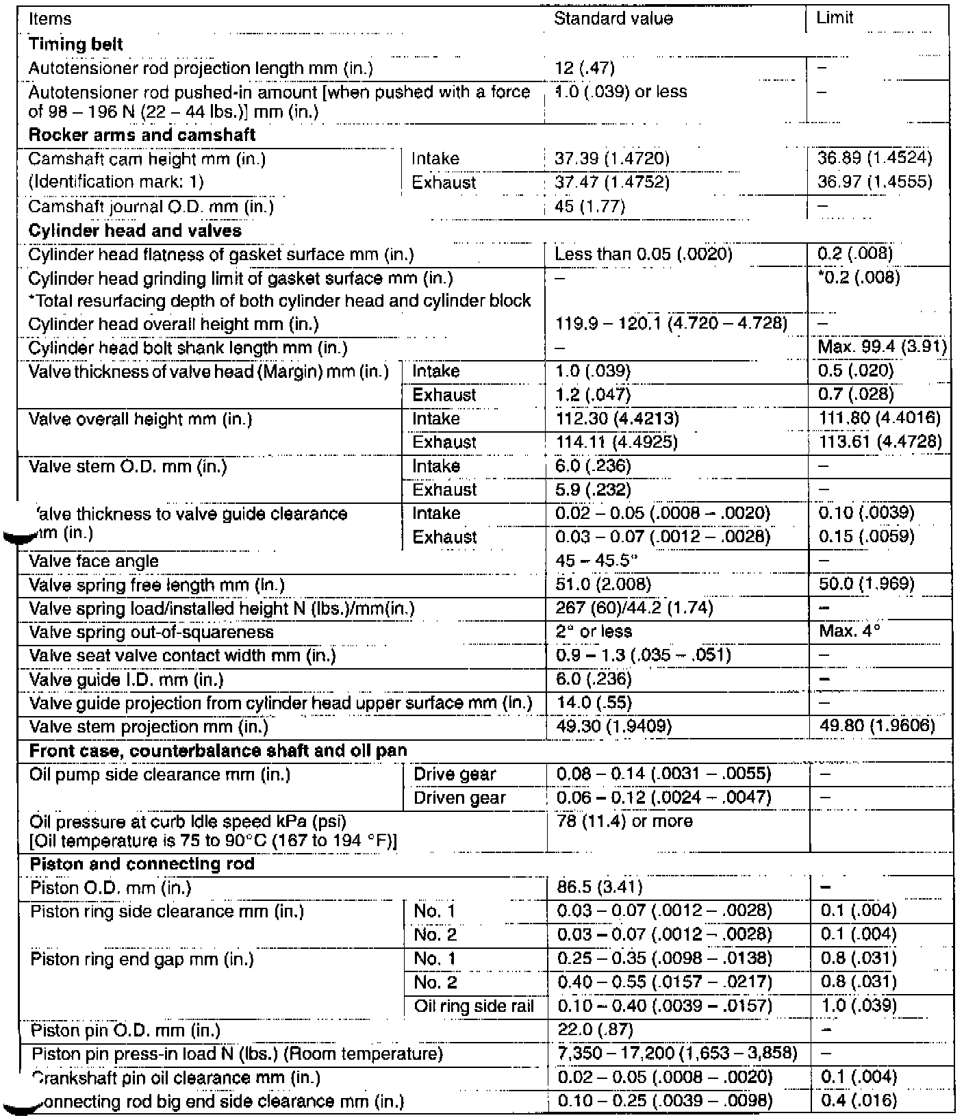 Engine-Overhaul Specifications