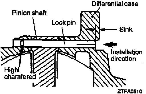CAUTION: The lock pin should be lower than the differential case flange surface.