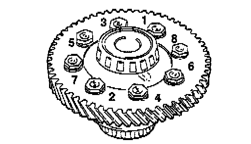 Apply automatic transmission fluid to the bolts and tighten the bolts to the specified torque in the sequence shown in the illustration.
